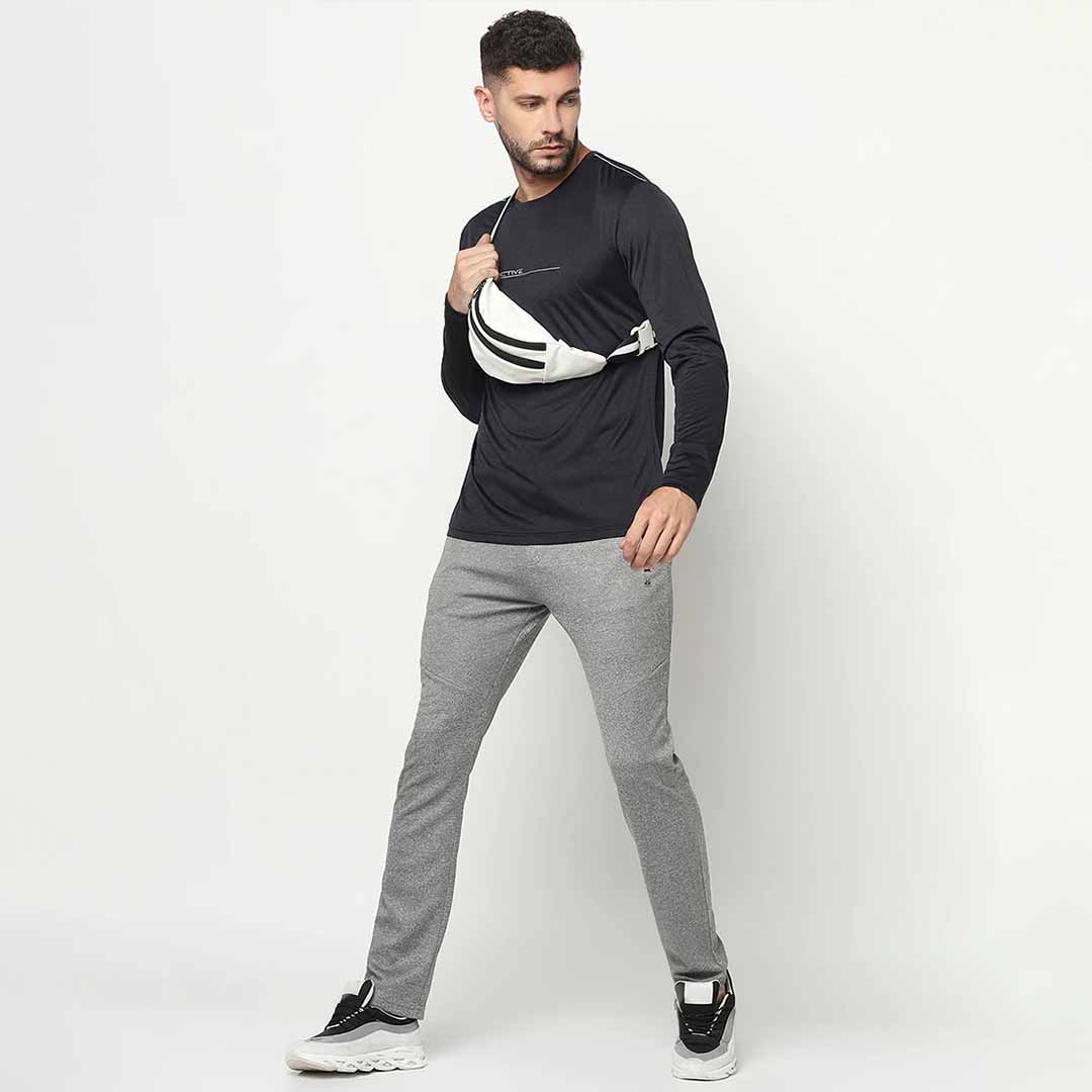 these tri-pocketed slim fit track pants are tailored in a straight cut and offer great ease of movement upon wear. perfect for long hours, these pair of grey tracks are a modern wardrobe essential.