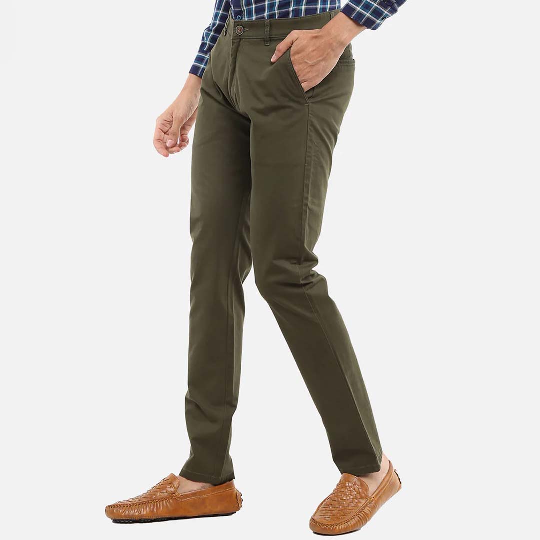 level up your wardrobe essentials with this stylish pair of slim fit trousers from arrow. the cotton spandex blend fabric of the trousers ensures an impeccable fit and comfort. match them with a solid t-shirt and your favourite pair of sneakers for a relaxed, casual look.