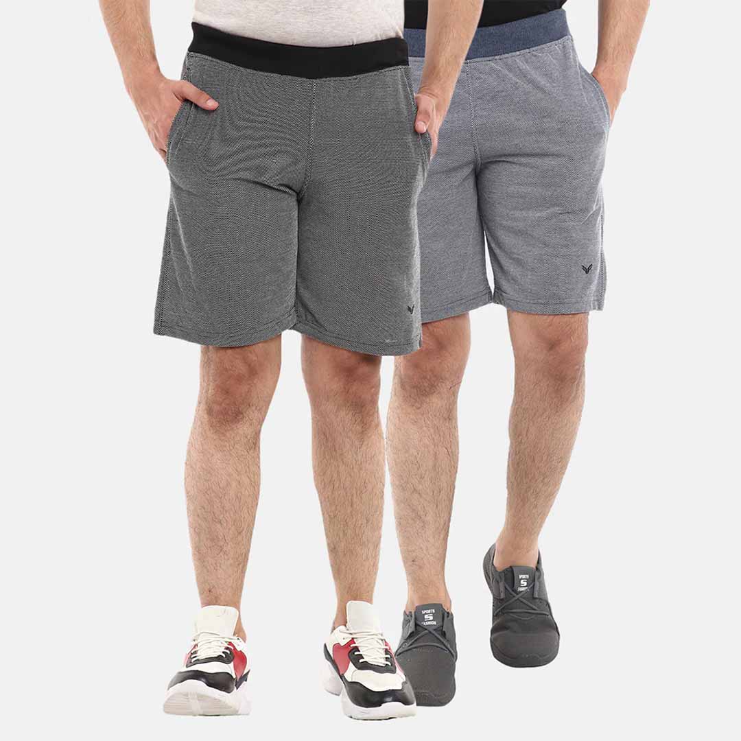 get a summer friendly look by wearing this simple patterned pack of 2 men's bermuda, made in a polyester fabric with an above knee length. this combo consists of navy and black bermudas. try to pair this with a cool half polo t-shirt and sneakers when you are going out with your friends. FIT & SIZE: