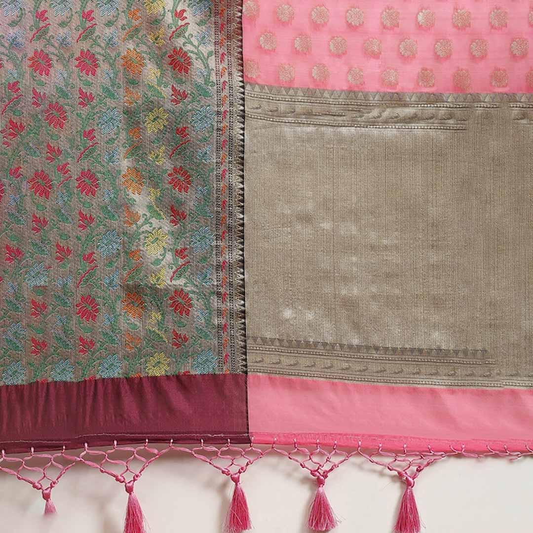 Pink and silver-toned saree Geometric embellished saree with embellished border border Has sequinned detail