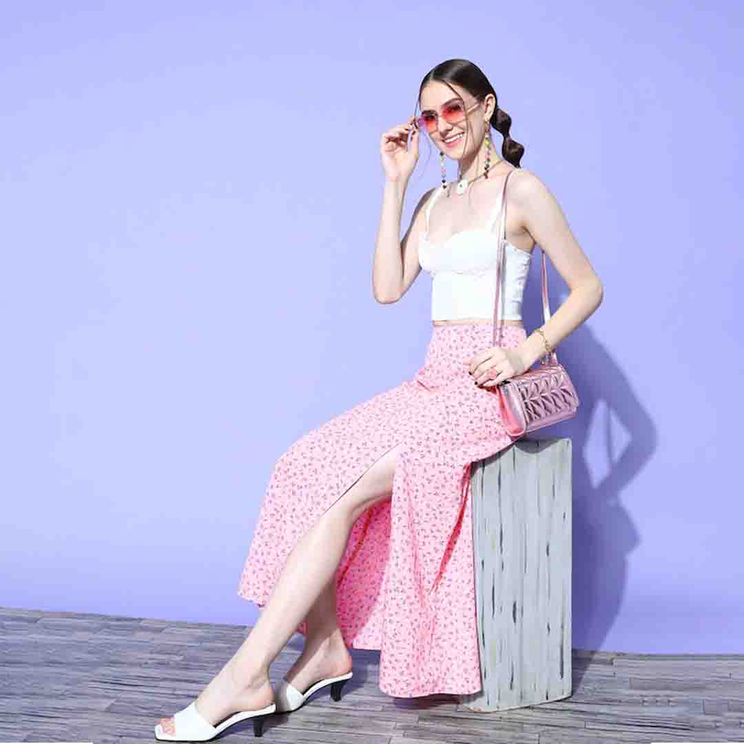 Make a stellar style statement when you step out donning this chic skirt. It comes with an attractive floral print and maxi length to enhance your appeal.