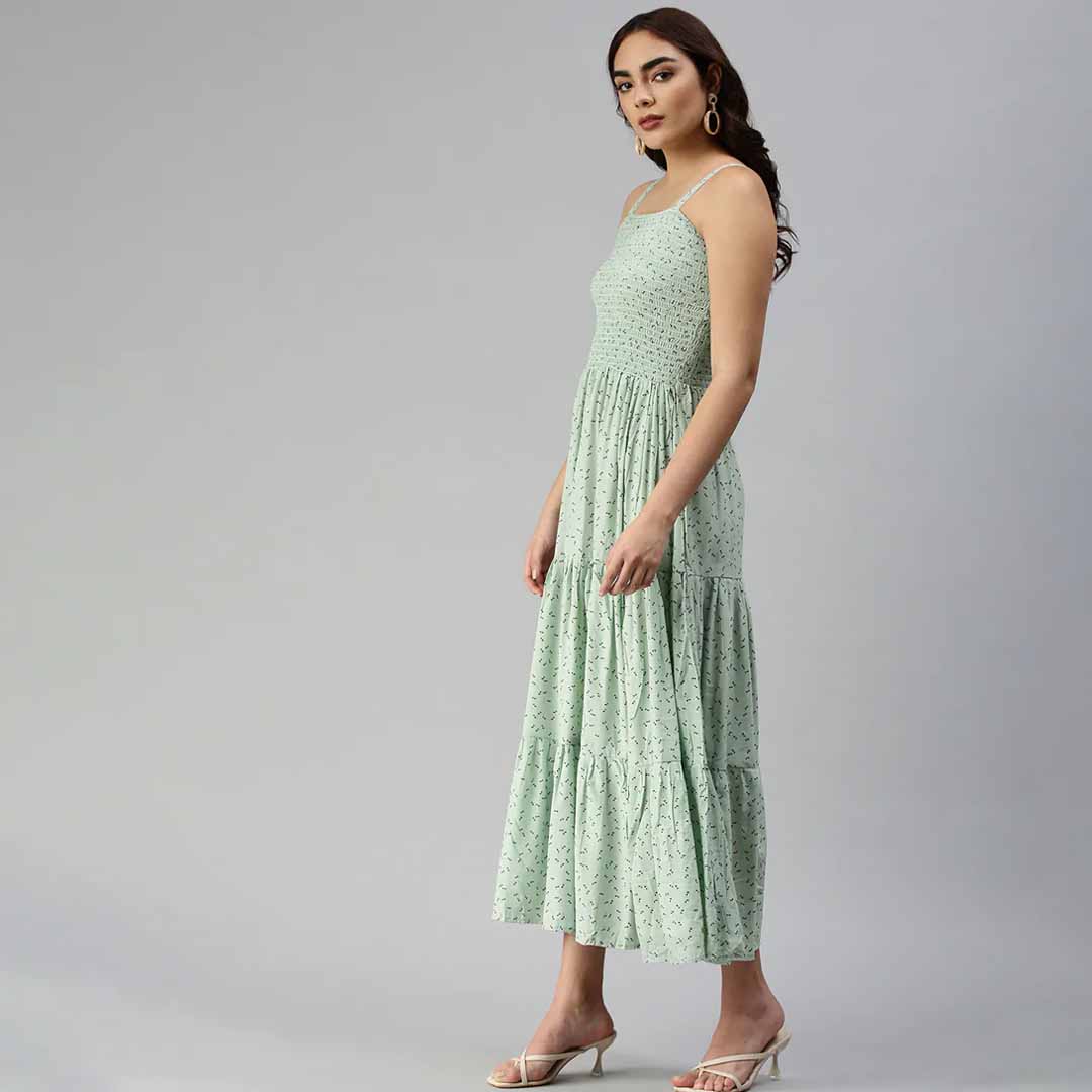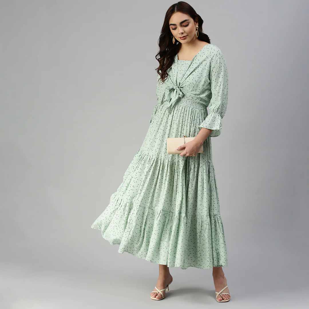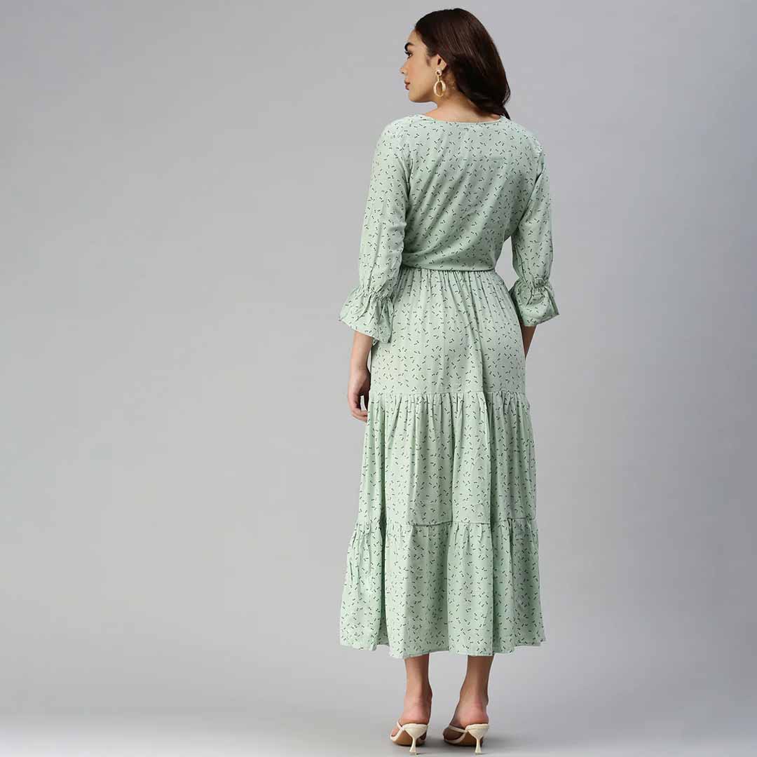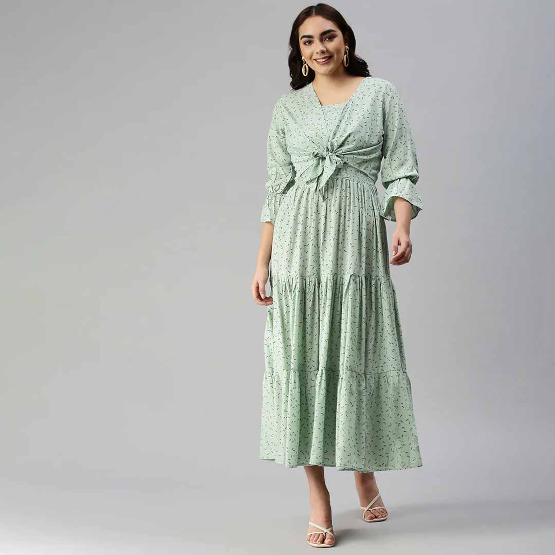 looking for an awesome collection of dresses? well, lay your hands on this dress and also get the option of choosing from green color. dress up in a soothing pattern and don this dress made of polyester material.