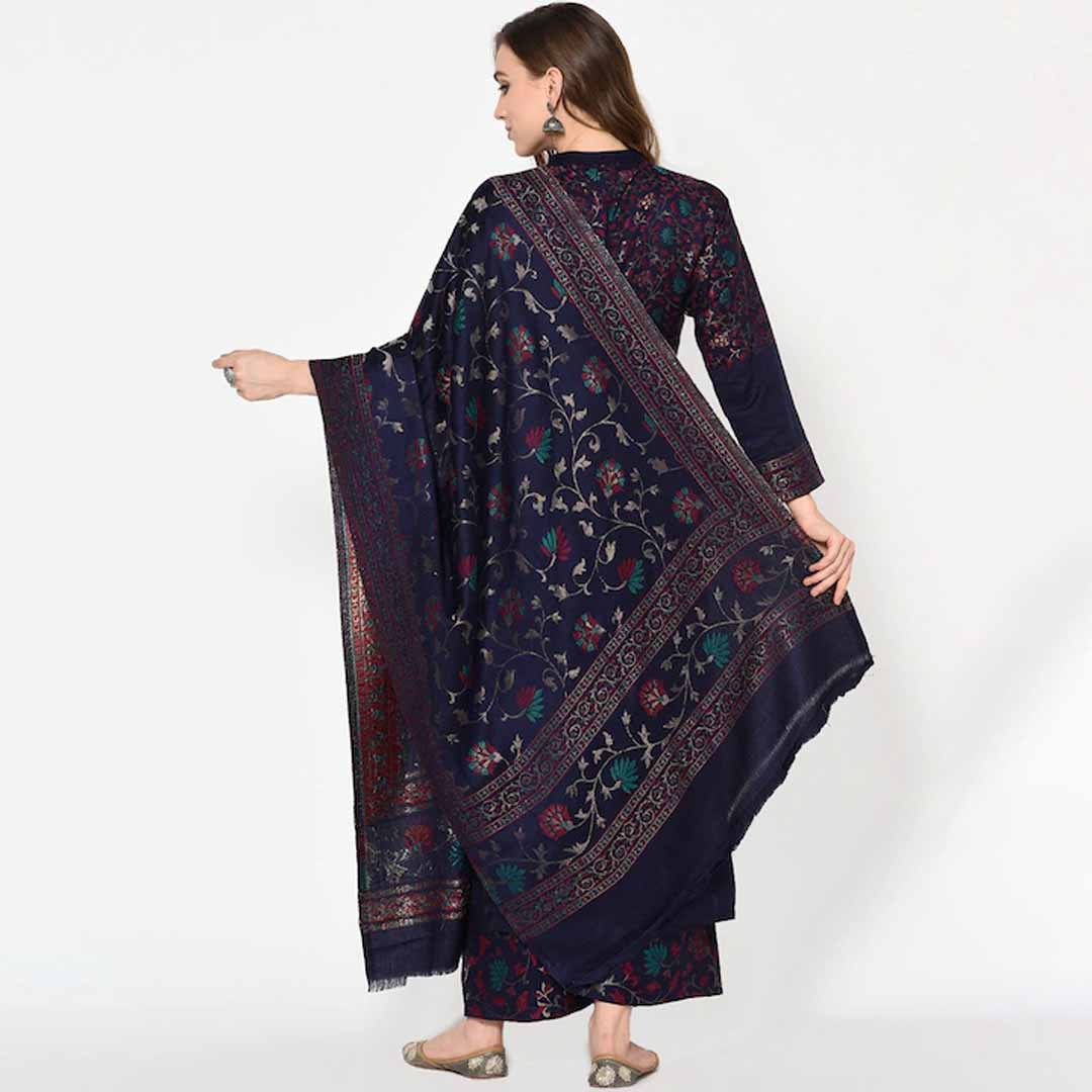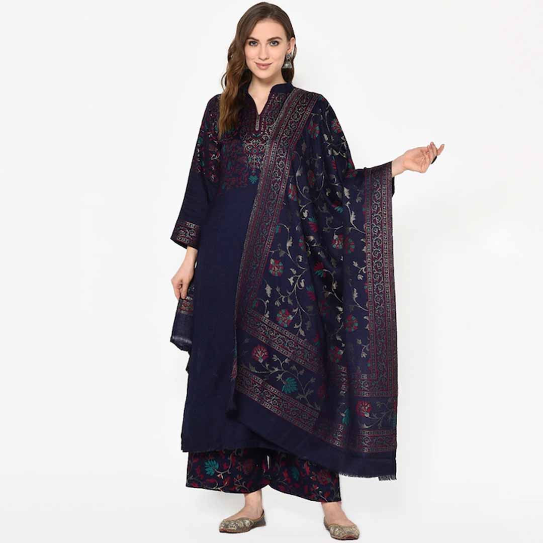 Navy Blue woven design unstitched dress material