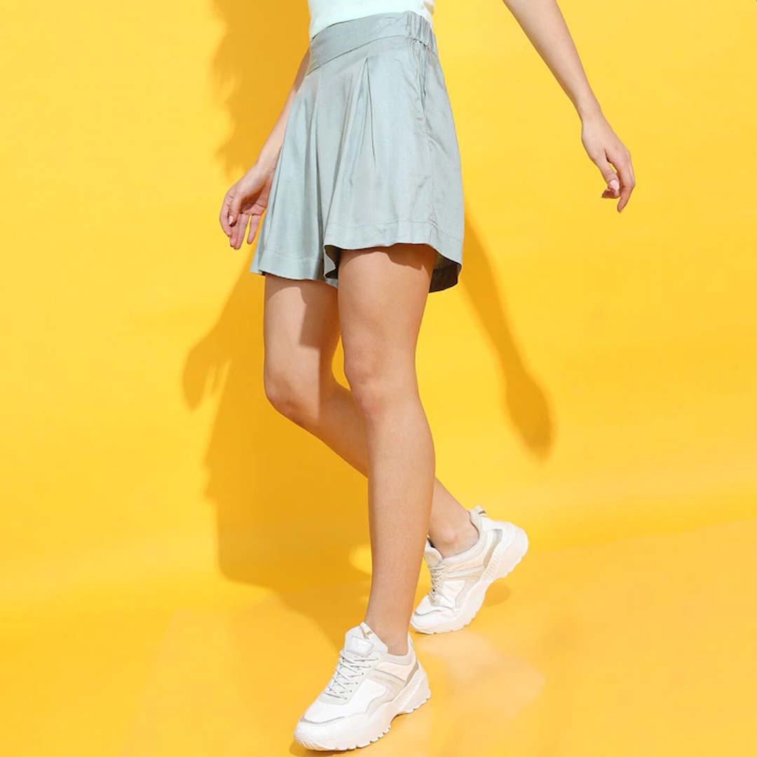 Olive green solid mid-rise regular shorts, has 2 pockets, drawstring closure